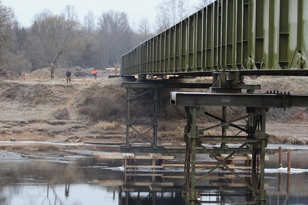 Материалы и комплектующие доставляются на монтажную площадку и складируются с учетом порядка технологии сборки конструкции. Создается запас сборочных элементов, необходимых не менее чем на 1-2 дня работ по возведению разборного моста.